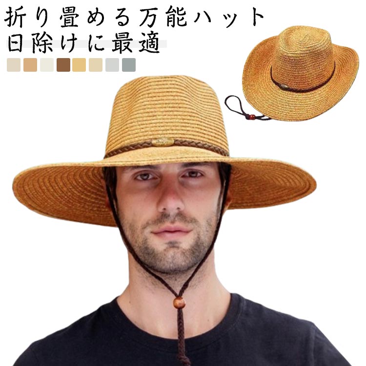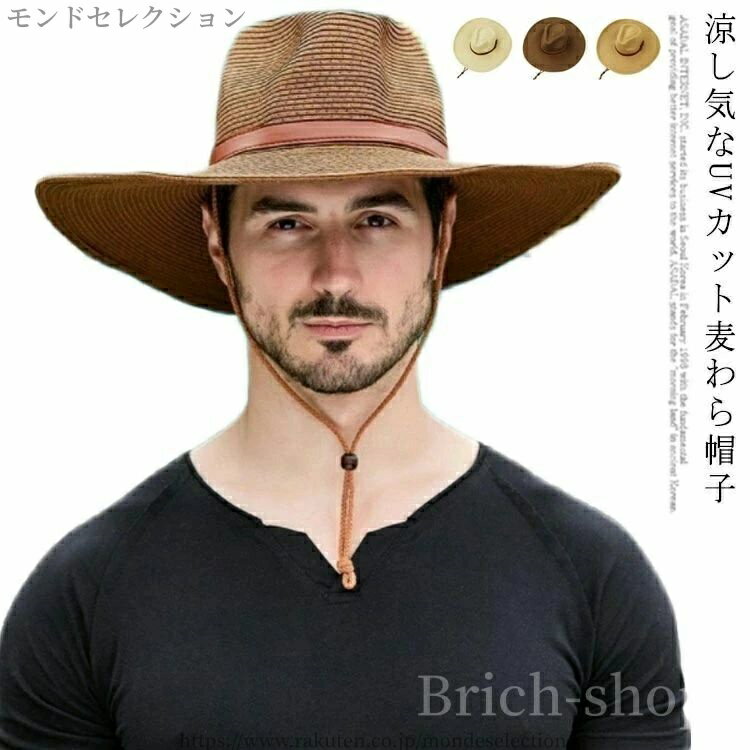 つば広 メンズ 旅行用 紫外線対策 麦わら帽...