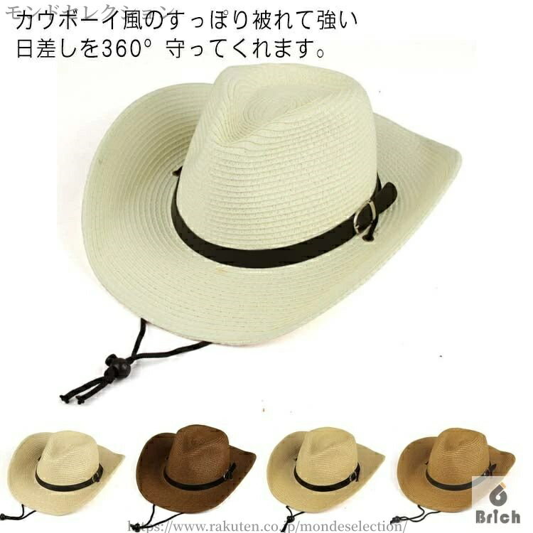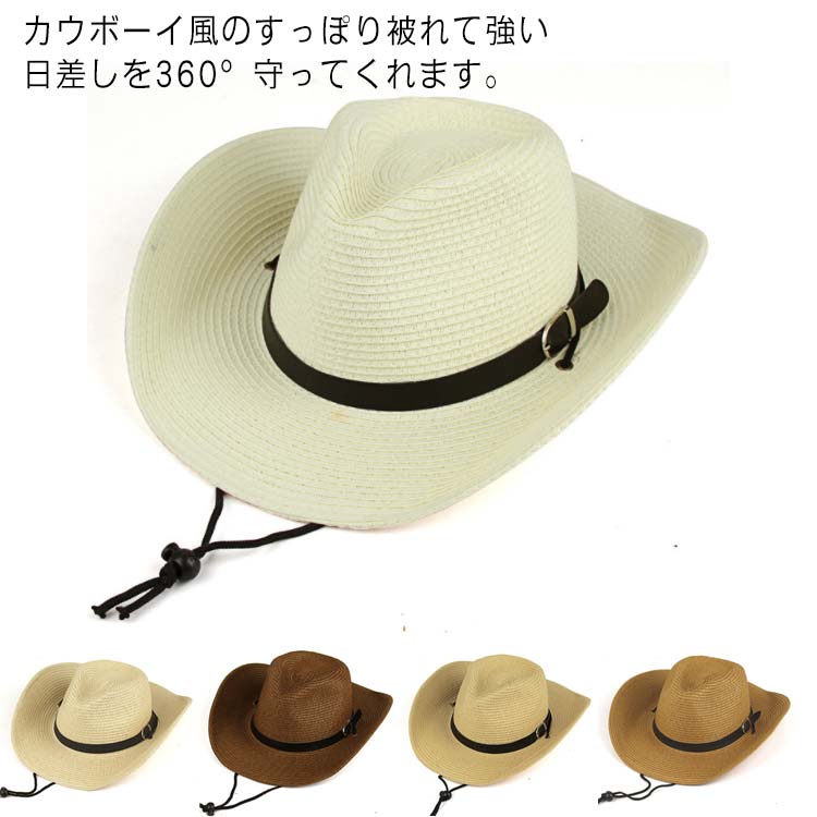 麦わら帽子 メンズ カウボーイハット ストロ...