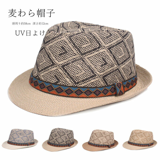 麦わら帽子 メンズ ストローハット 春夏 中...