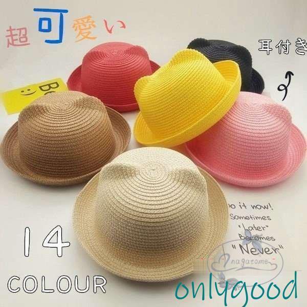 麦わら帽子キッズ女の子男の子耳付き猫耳夏...