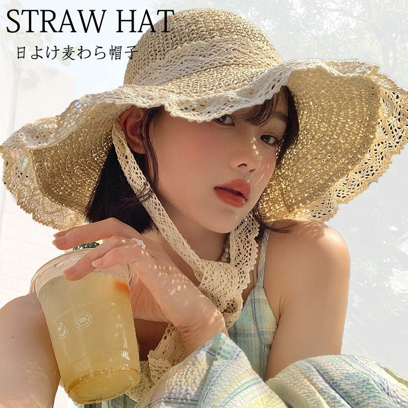 麦わら帽子 日焼け防止 レディース 麦わら ...