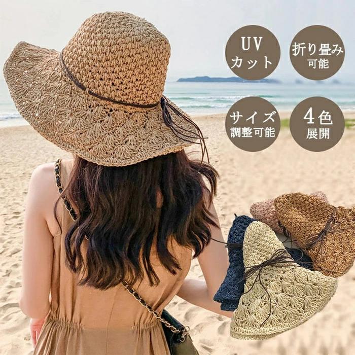 春夏 折りたたみ ビーチ 春 ストローハット ...