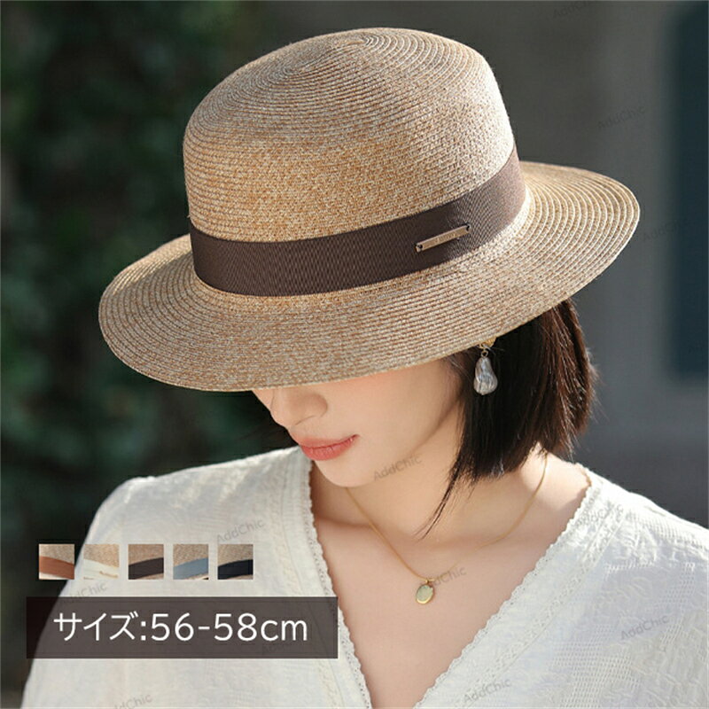 レディース 麦わら帽子 カンカン帽 帽子 リ...