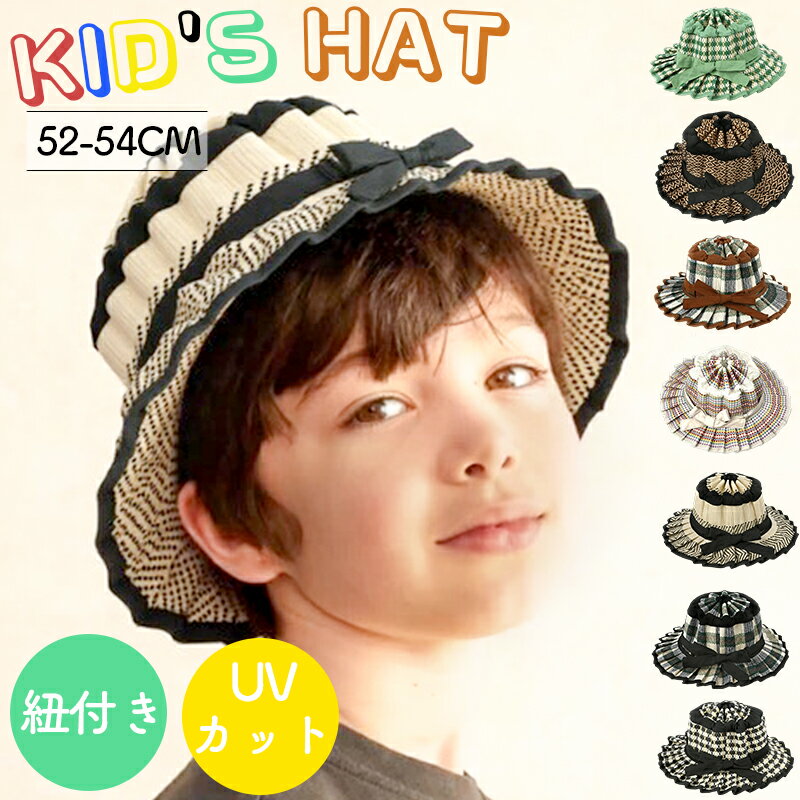 麦わら帽子 キッズ UVカット 通気性 つば広 ...