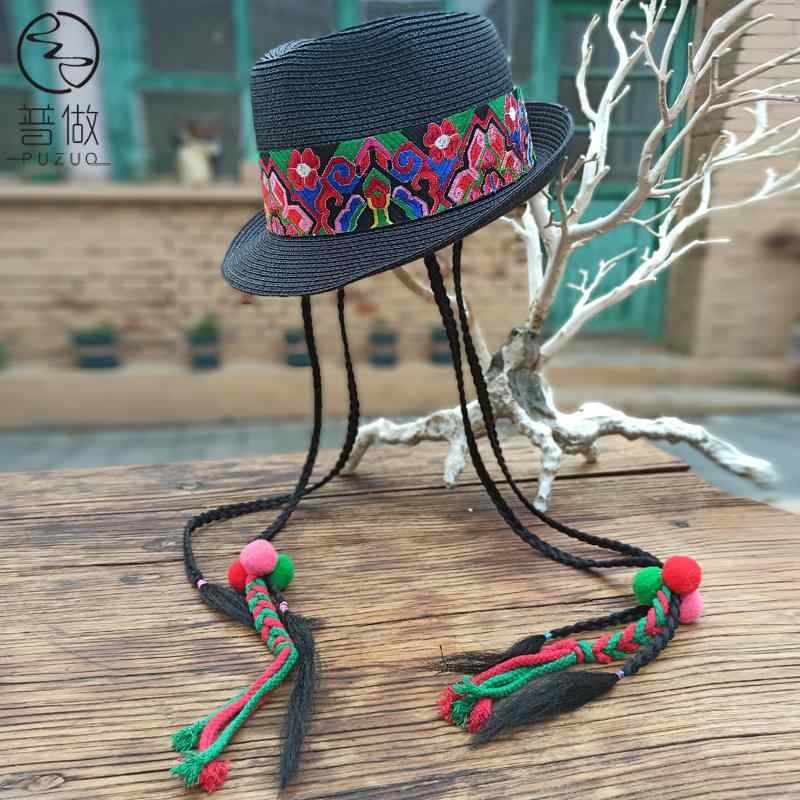 麦わら帽子 レディース エスニック風 刺繍 ...