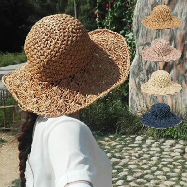 UVケア 麦わら帽子 韓国ファッション レディ...