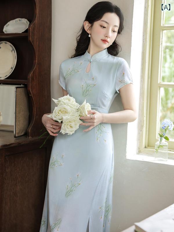 送料無料ドレス 大人 袖付き 花柄 編み上げ ...