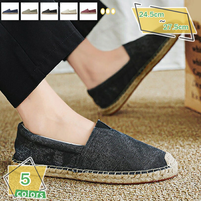 スリッポン メンズシューズ 綿麻 カジュアル...