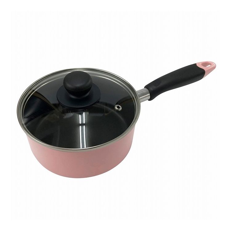 ベストコ 片手鍋 16cm ガラス蓋付 ピンク ちび...