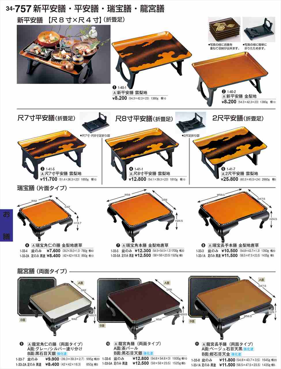 若泉漆器 龍宮角膳 両面 盆のみA面 茶パールB...