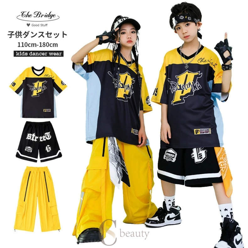 ダンス衣装 キッズ ヒップホップ イエロー ...