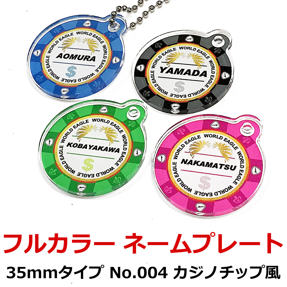 カジノチップ風 カラフル 35mm ネームプレー...