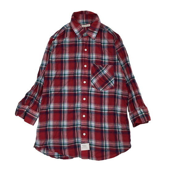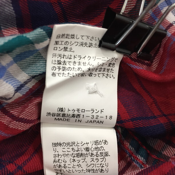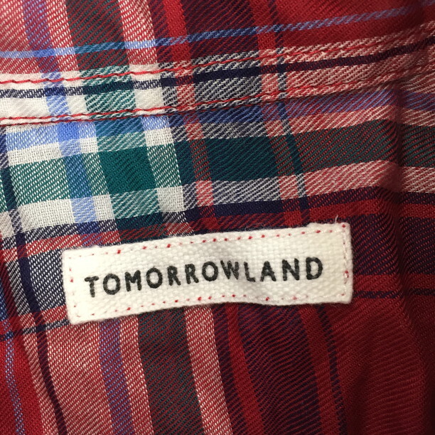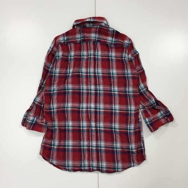 2206F-176 メンズ TOMORROWLAND トゥモローランド レッド シャツ S タータンチェック 七分袖 胸ポケット 薄手【送料一律!800円】