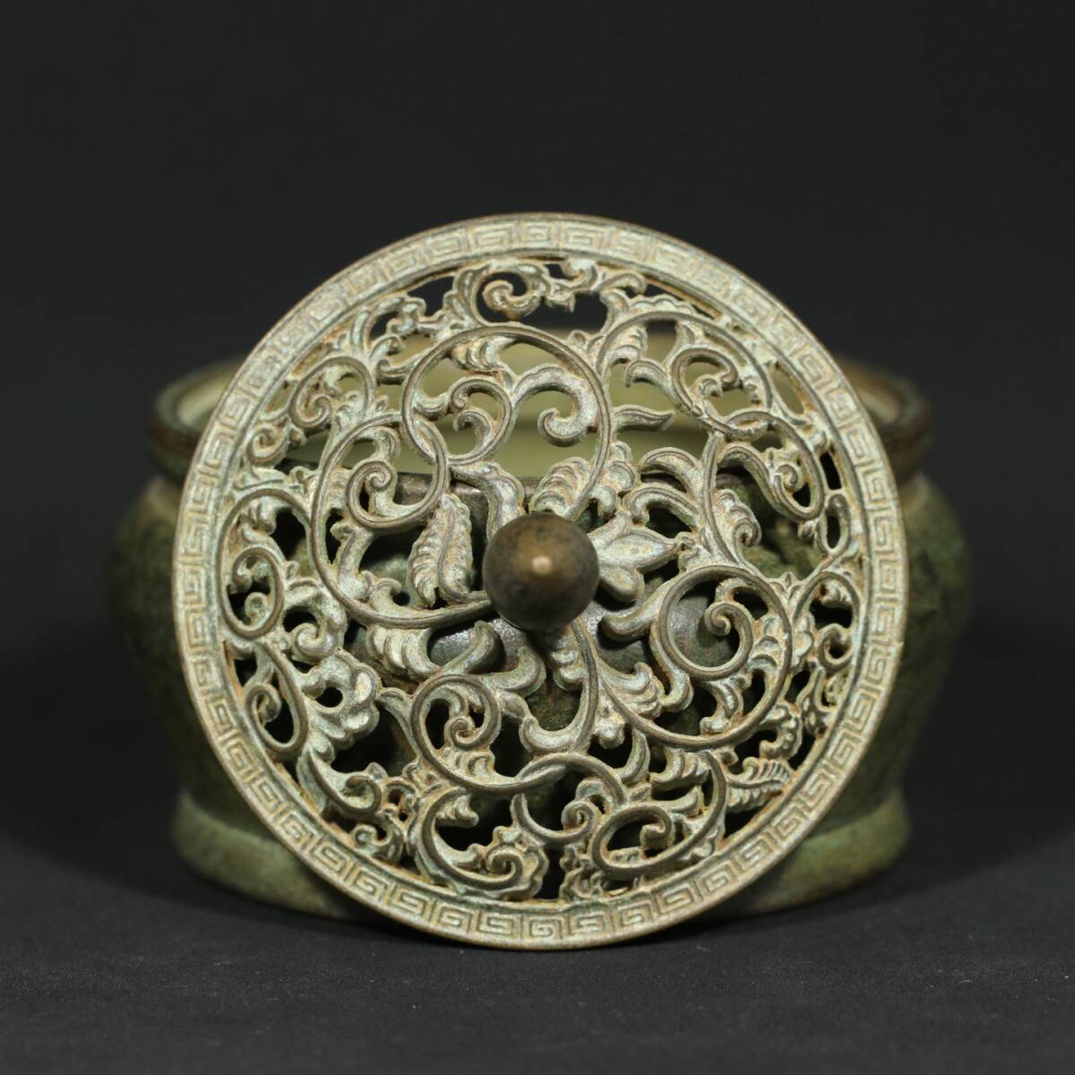 TM8#7524【3.1】中国骨董 人間国宝 [ 大明宣徳【花開富貴薫香炉】です] 銅器 金属工芸品 古玩收藏 復古 置物 純銅鋳造 開運風水