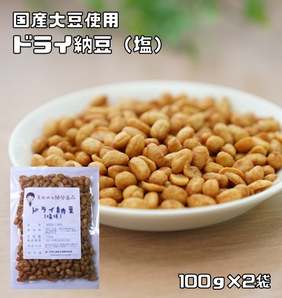 ドライ納豆 塩味 100g×2袋 豆力 国内産 (メール便) 国産 干し納豆 乾燥納豆 おつまみ 豆菓子 発酵食品 納豆スナック 納豆菓子