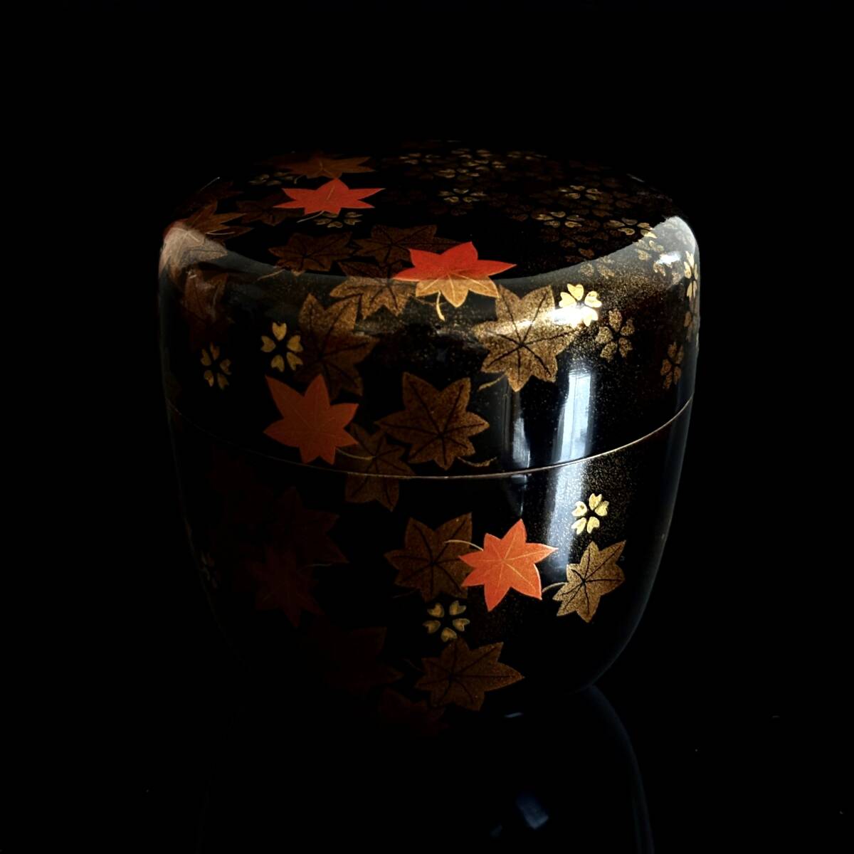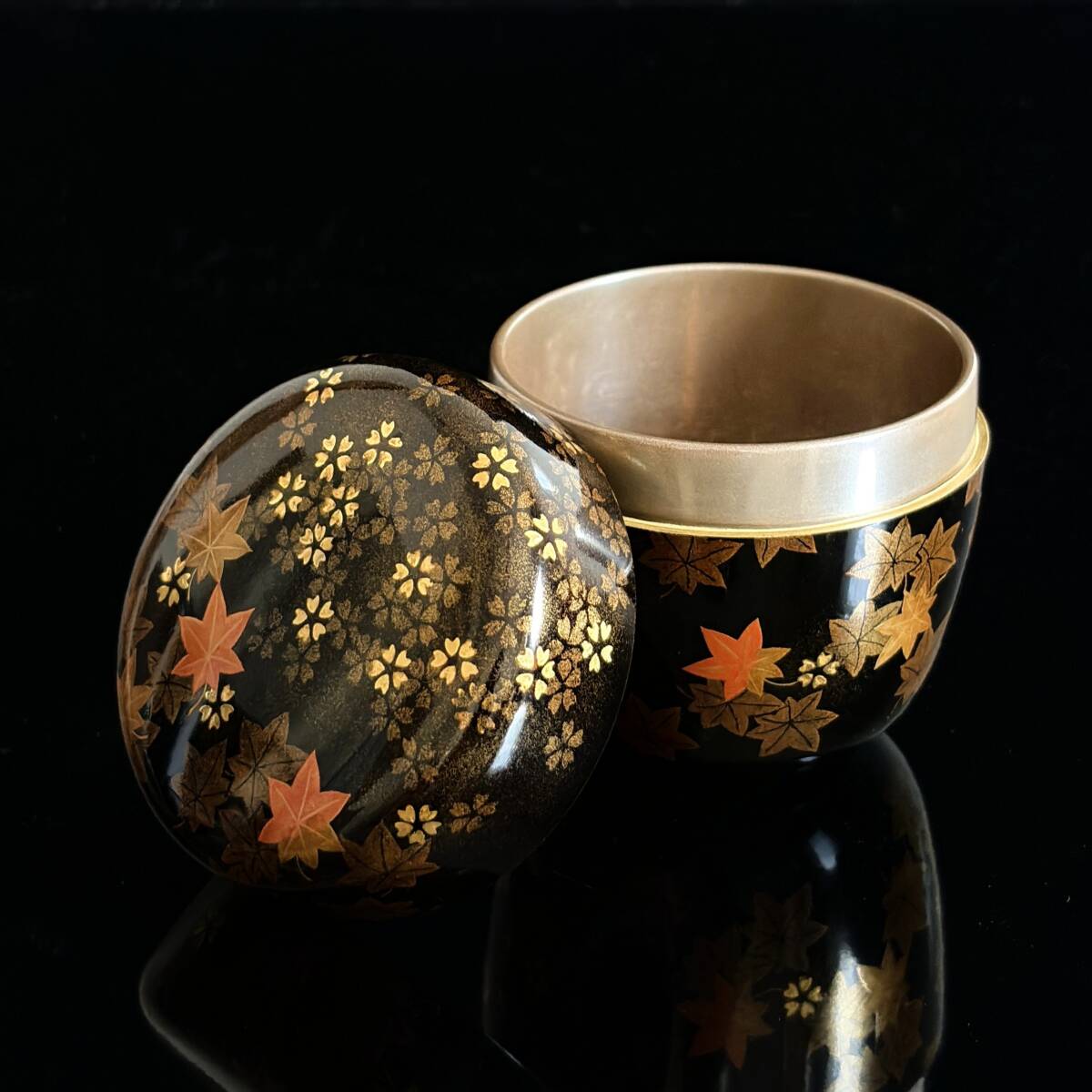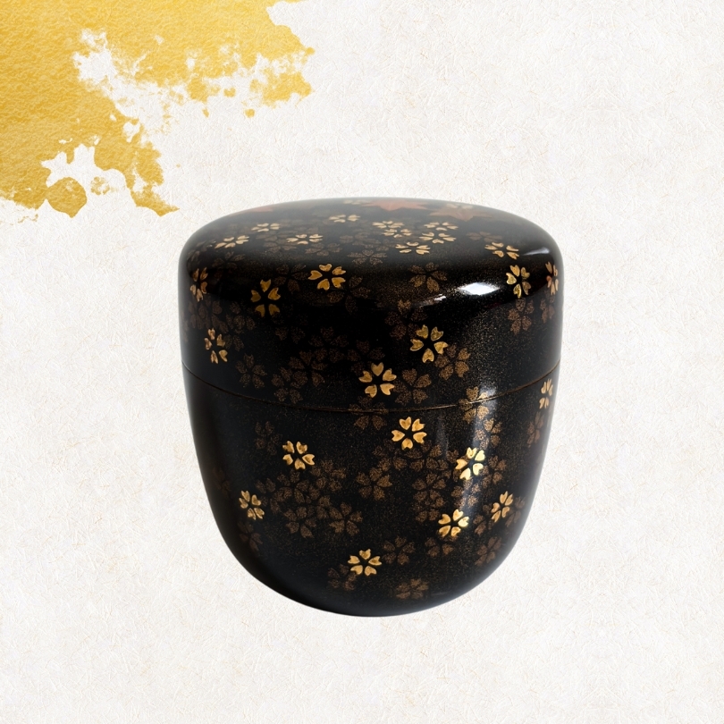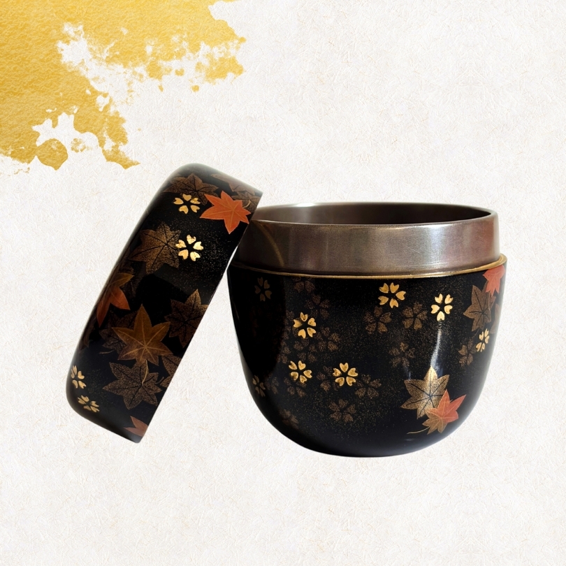-飯田光秋- 雲錦蒔絵棗 内銀/高さ7.3cm/茶道具/抹茶