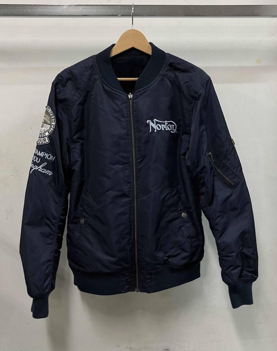 Norton ノートン リバーシブル ボア ブルゾン ジャケット WA-1 刺繍 ロゴ サイズM チェスト88〜96 身長165〜175 ネイビー ナイロン100%