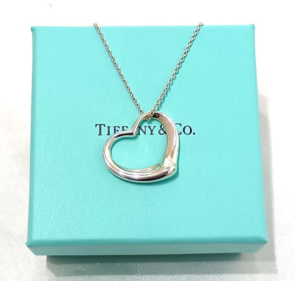 ◆TIFFANY&Co◆ティファニー オープンハートネックレス 大 横約27mm 縦約23.3mm 全長約48.5cm 重量約8.5g 引き輪不良 共箱 中古 保管品