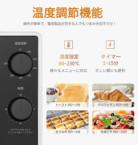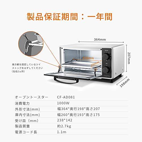 COMFEE' オーブントースター 8L トースター 2枚焼き タイマー設定 80~230℃まで 無段階 温度調節 1000W 上下高火力 一人