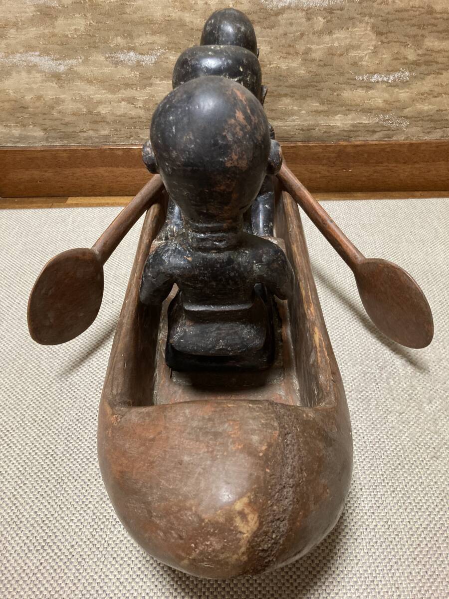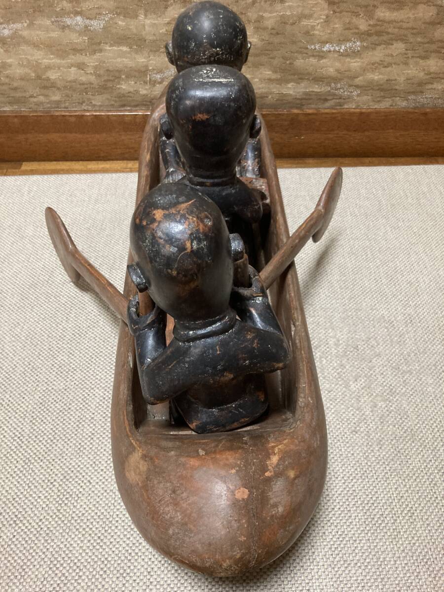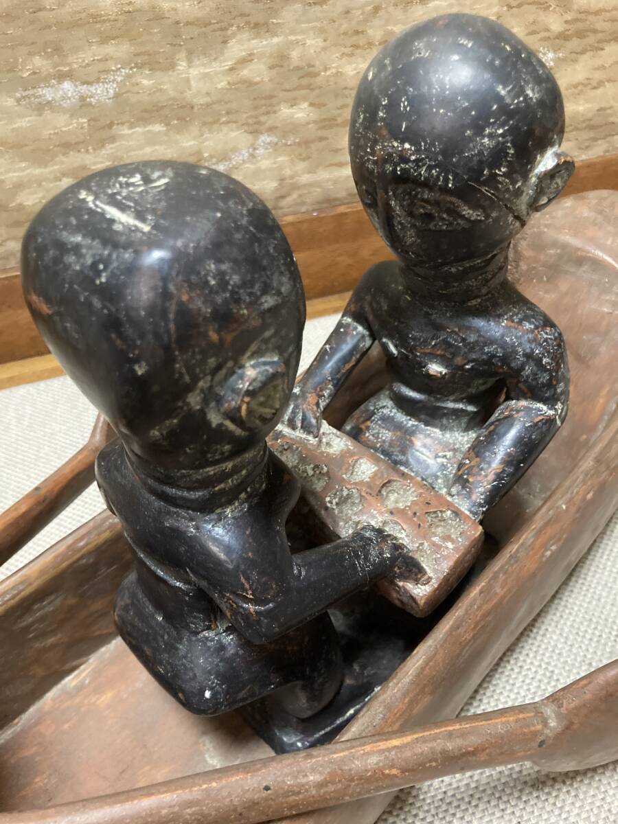 【マコンデ彫刻】アフリカ アフリカ系 木彫 マコンデ彫刻 船漕ぎ 船 大型 民族 部族 工芸 オブジェ【現状品】