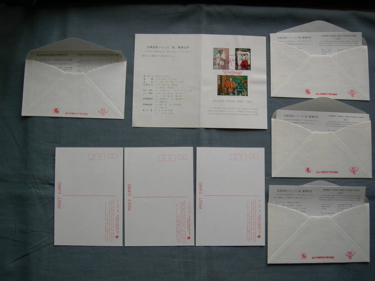 「古典芸能シリーズ 能」・FDC(銀座わたなべ版)、初日印 解説書、MCカード、合計8点 *同梱可