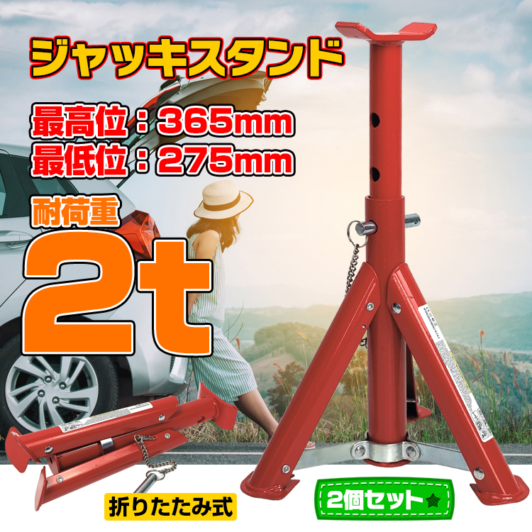 送料無料 ジャッキスタンド 2t 折りたたみ 2基セット ウマ 馬ジャッキ リジッドラック ジャッキアップ 2トン タイヤ交換 軽量 車用品 ee123