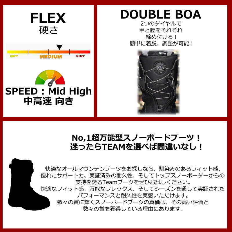 25-26 NITRO TEAM BOA WIDE カラー:Black 27.5cm ナイトロ チーム ボア メンズ スノーボードブーツ 熱成型対応