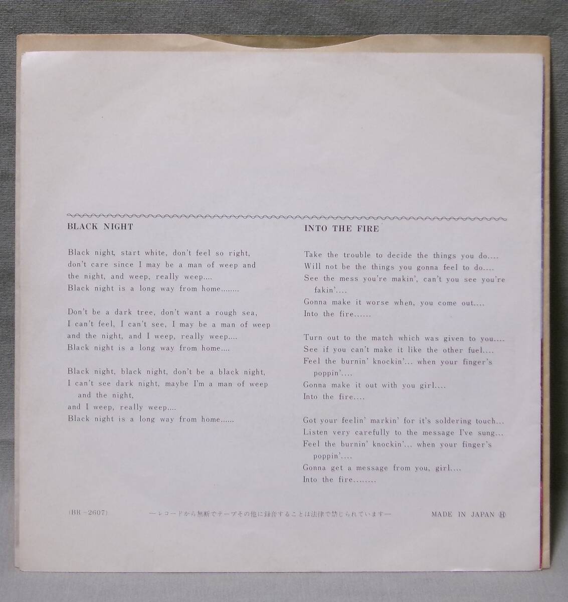 Deep Purple【 BLACK NIGHT / ブラック・ナイト 】東芝音楽工業 / シングル / BR-2607