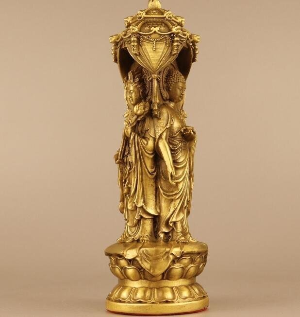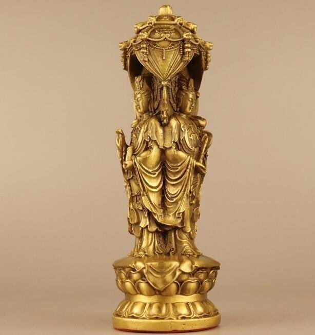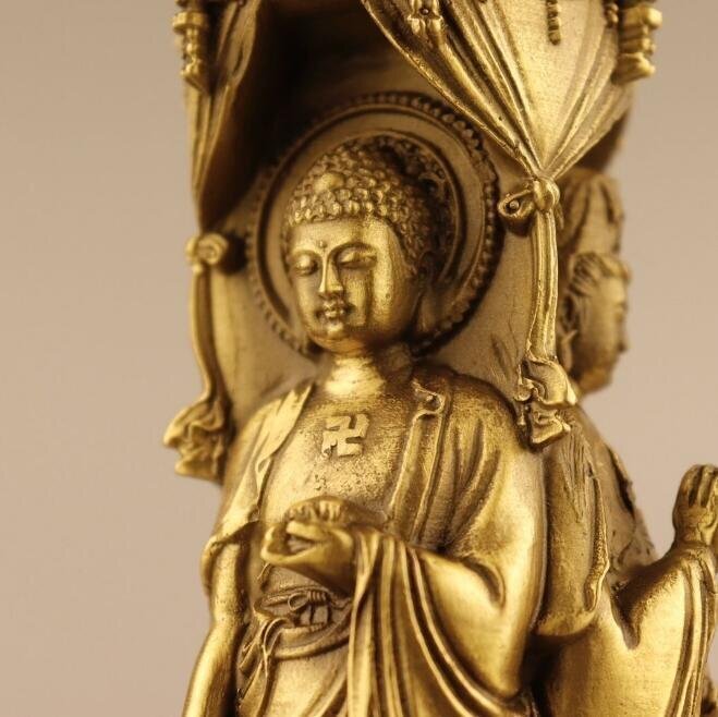 純銅三面仏西方三聖仏置物阿弥陀仏観世音大勢至菩薩神像供養