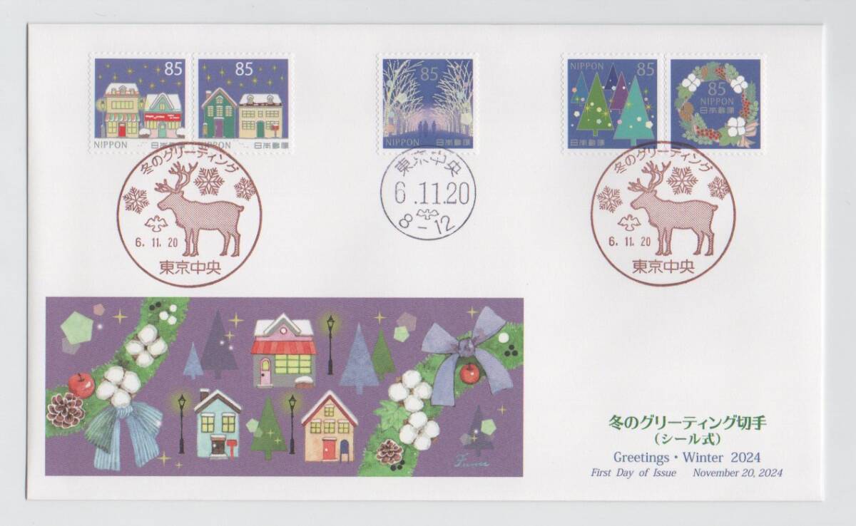 ◆グリーティング FDC2◆令和6年 冬のグリーティング85円 5種貼