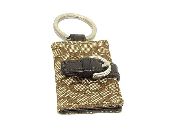 1円 COACH コーチ ミニシグネチャー キャンバス×レザー キーホルダー キーリング アクセサリー ブラウン系×シルバー系 BN6364