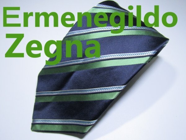 【ゼニア】 UA 811 エルメネジルドゼニア ErmenegildoZegna ITALY ネクタイ 紺色系 レジメンタルストライプ ジャガード