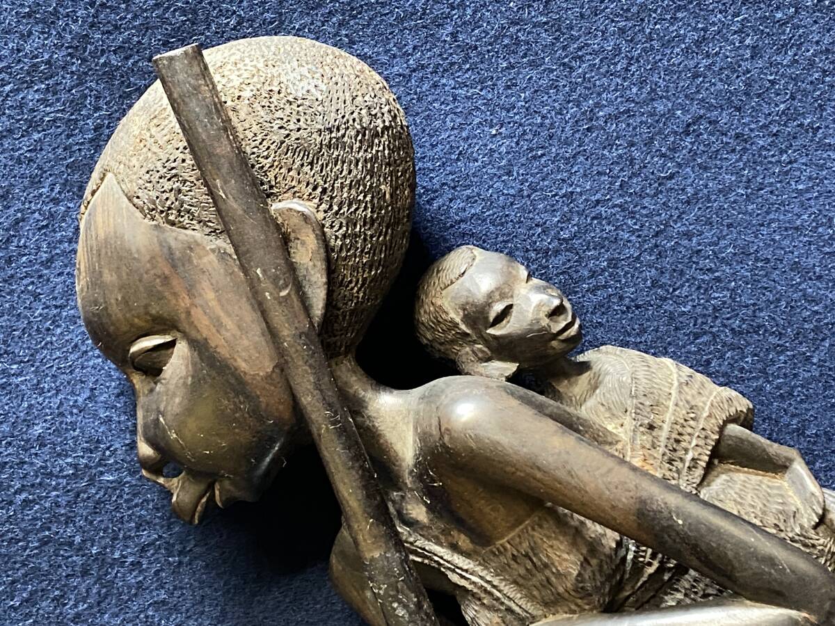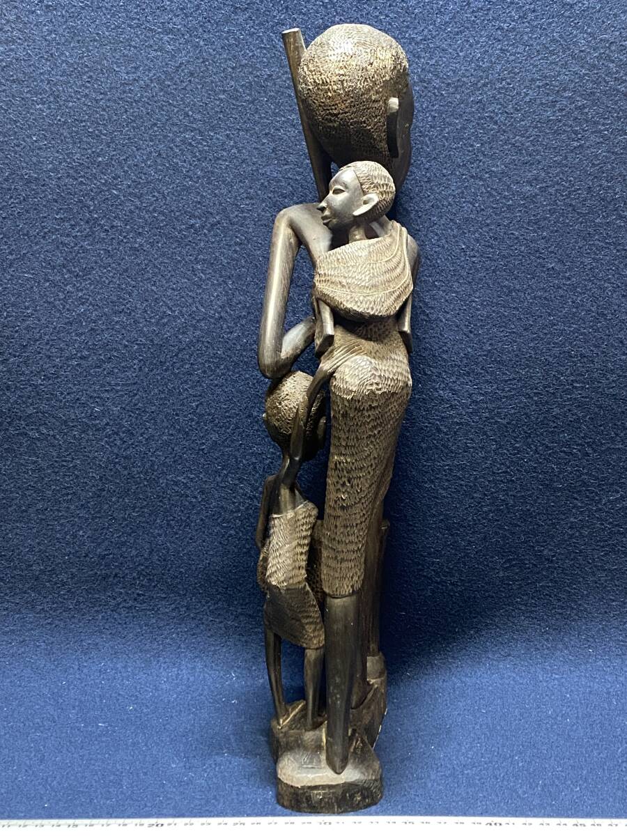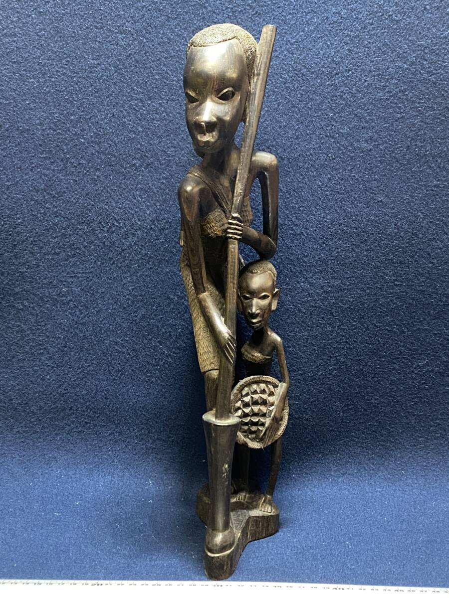 アフリカ 置物 黒檀 縞黒檀 木彫 彫刻 無垢 堅い木 雑貨 オブジェ インテリア コレクション 立像 黒人 生活模様 現地人 美人女性 子供 家族