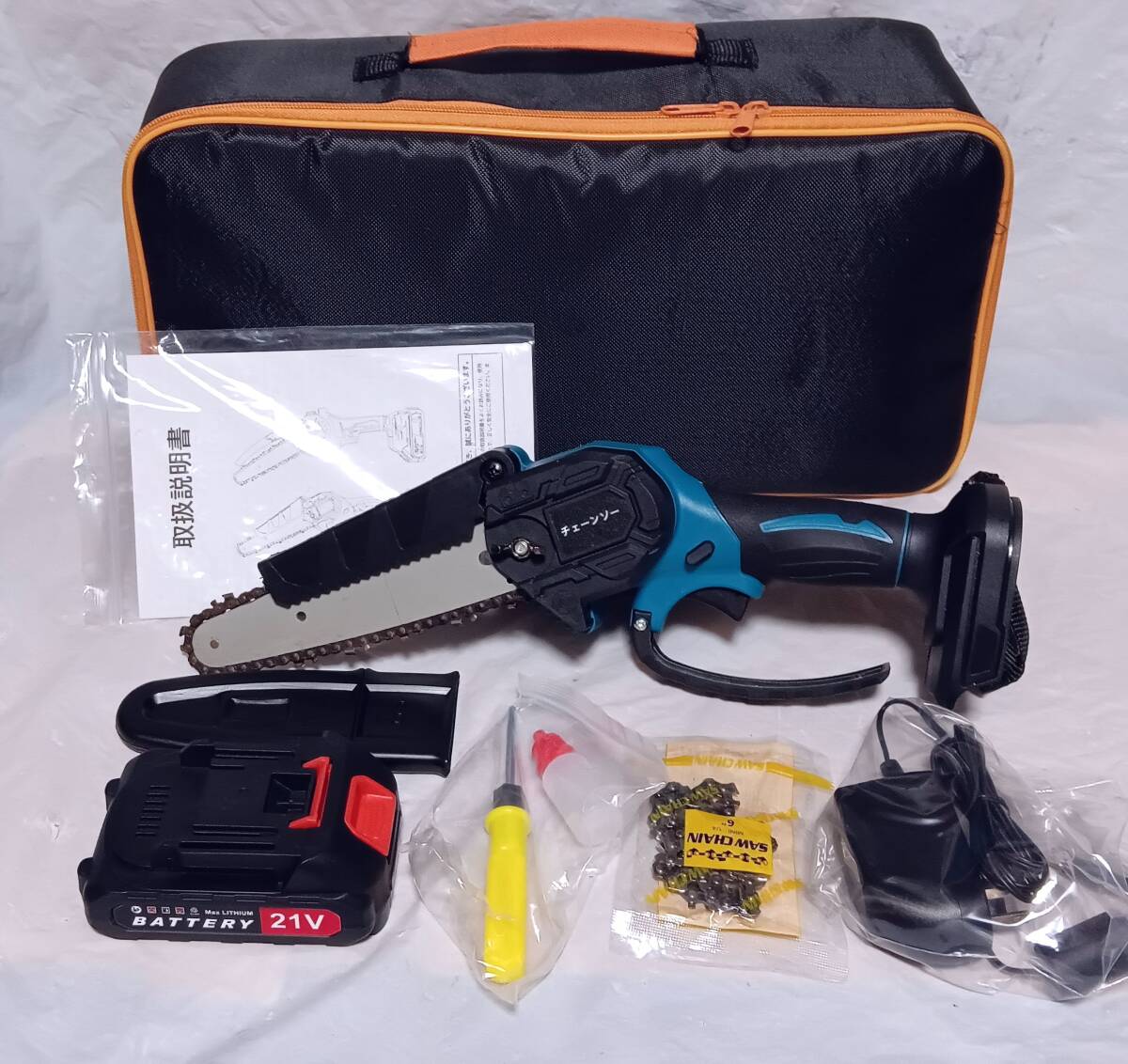 ●美品●●チェーンソー バッテリー+専用充電器+予備チェーン+他、初期保証有り●●送料込み