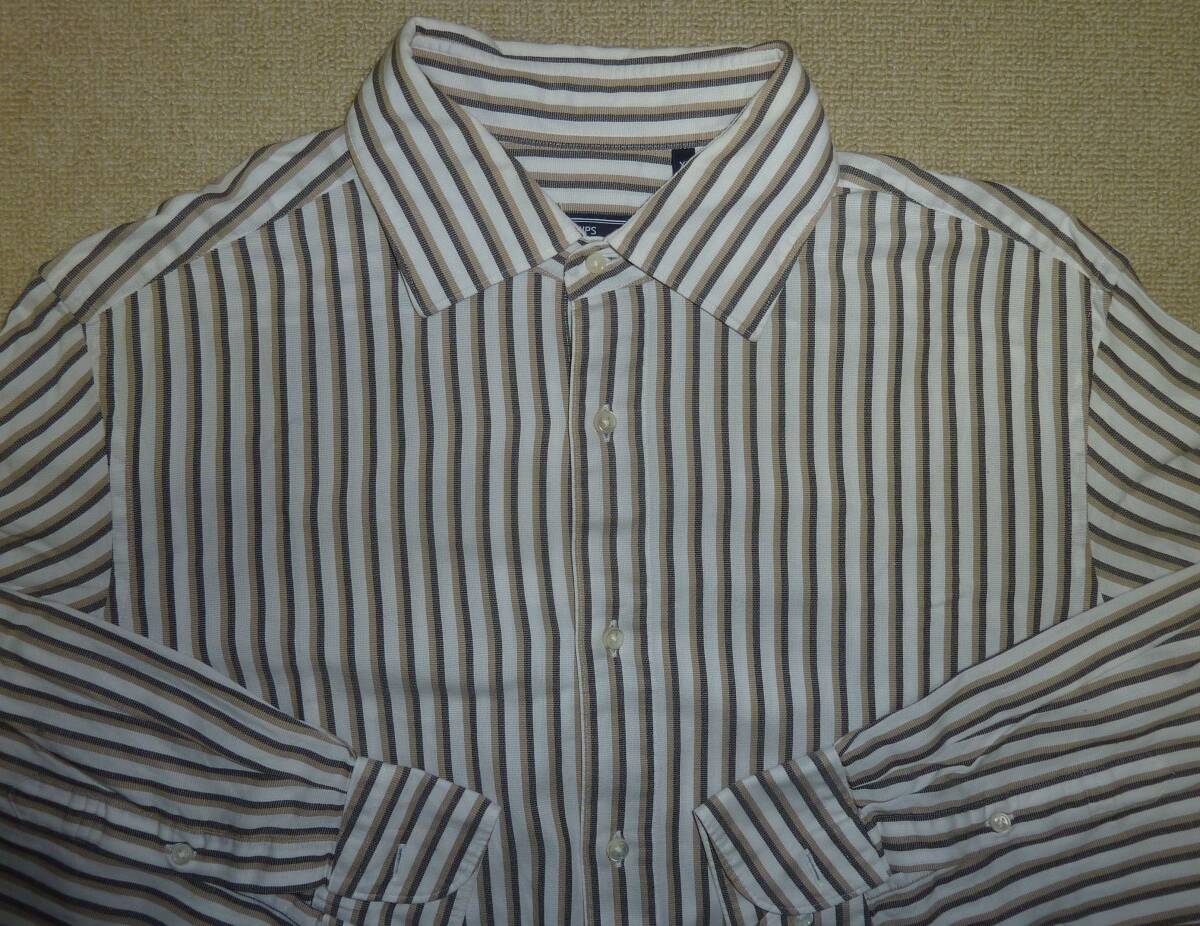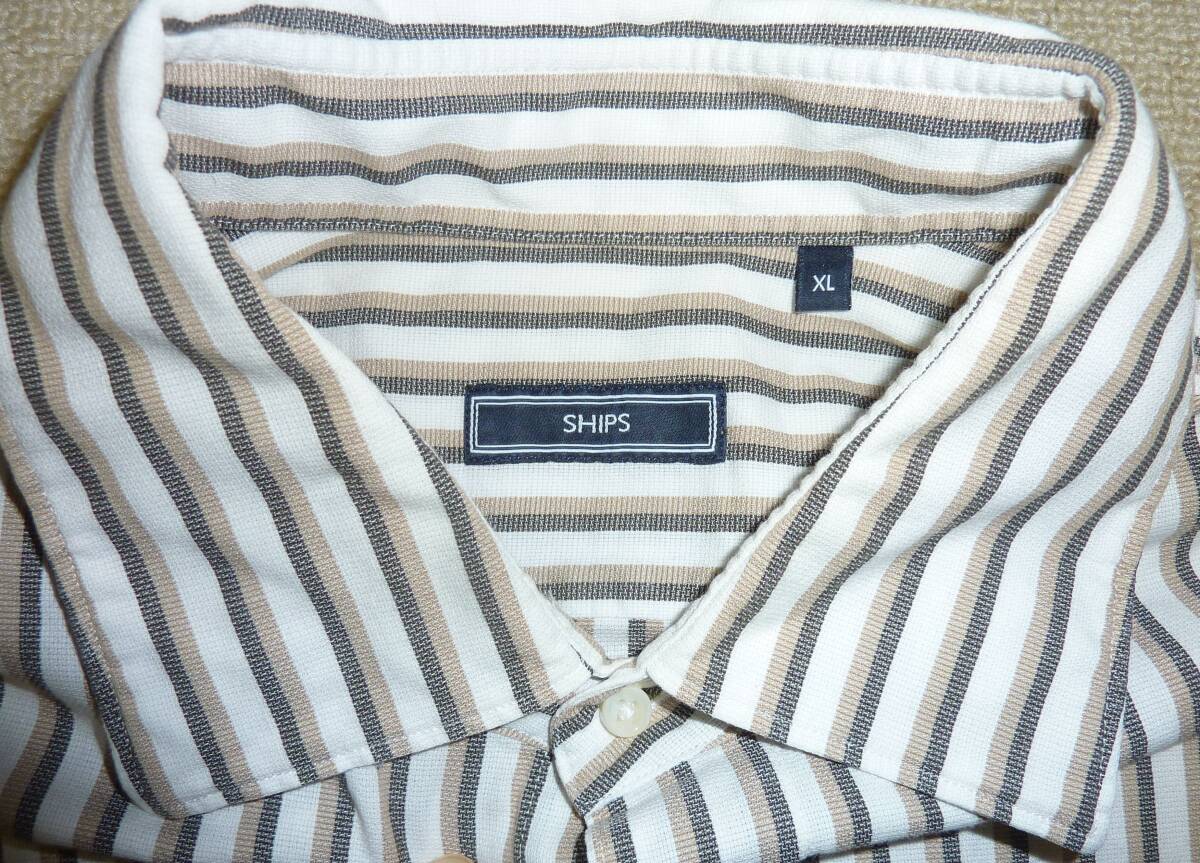 ●○SHIPS ウォッシュド コットンストレッチ ストライプ ワイドカラー シャツ 長袖 グリーン サイズXL 抗菌防臭 (111-10-0445) 2021SS○●