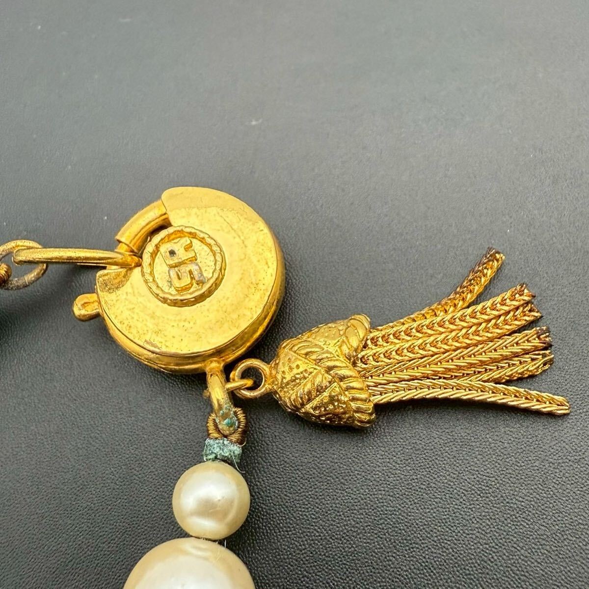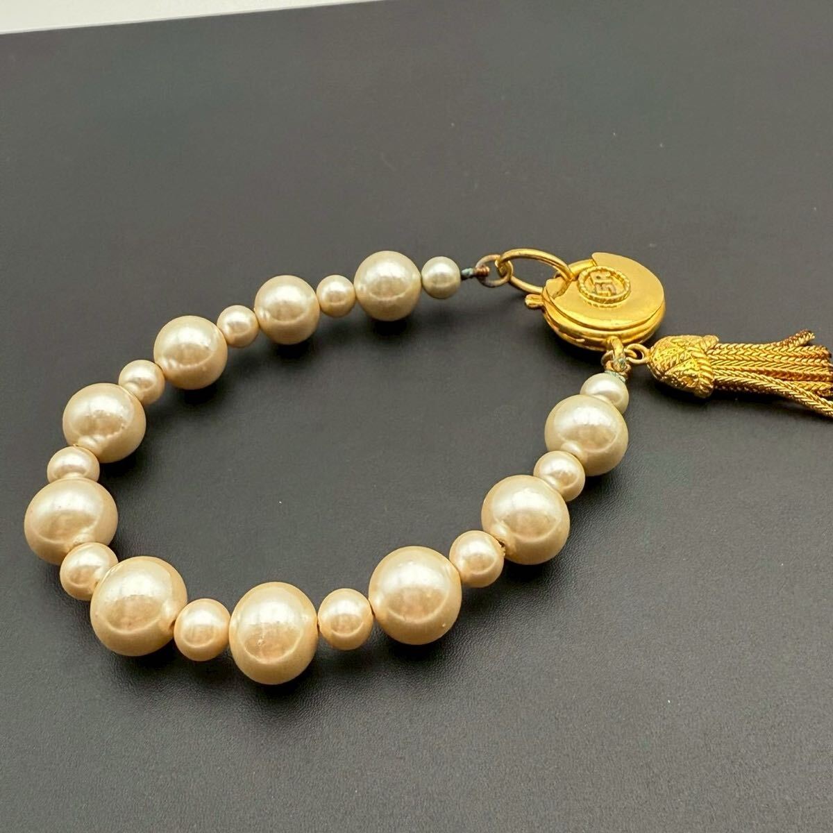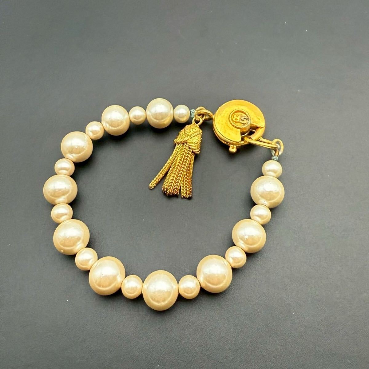 【希少】SONIA RYKIEL ソニアリキエル SR ブレスレット バングル パール 大玉 ゴールド フリンジ コスチュームジュエリー ヴィンテージ