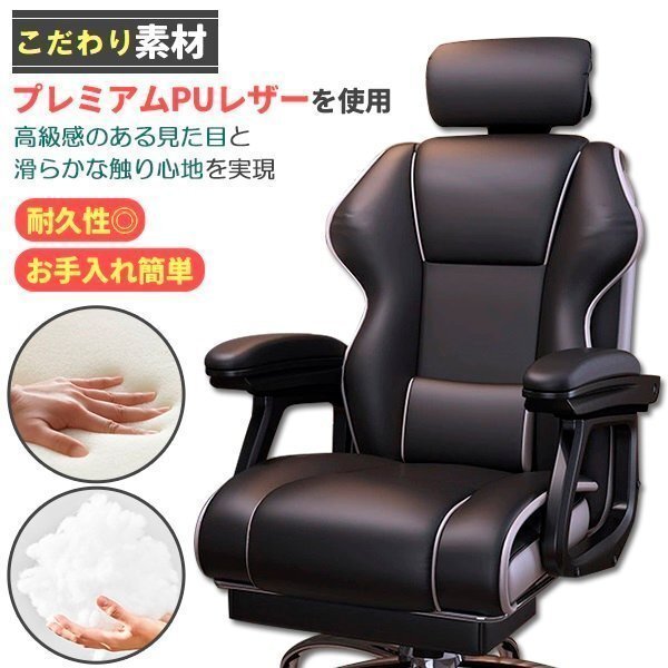 社長椅子 ゲーミングチェア デスクチェア 360度回転 昇降機能 リクライニングチェア 肉厚座面 事務椅子 ブラック