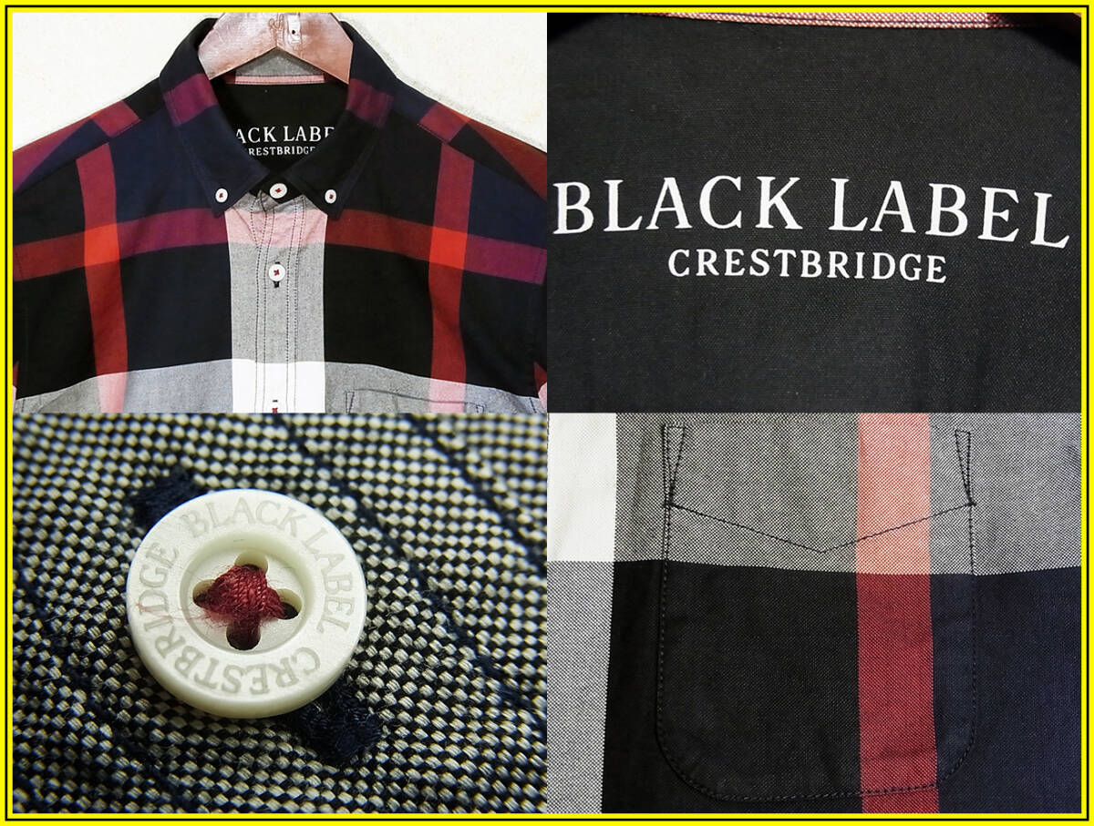 極上傑作!ブランド代名詞!CBチェック 総柄 長袖 シャツ サイズM▼ブラックレーベルクレストブリッジ CRESTBRIDGE バーバリー