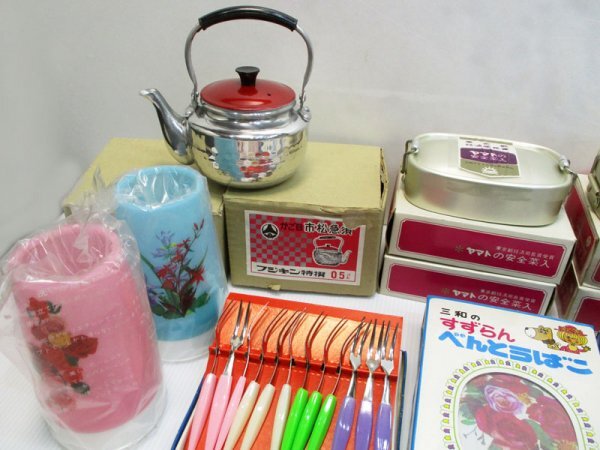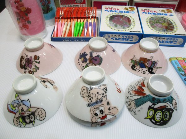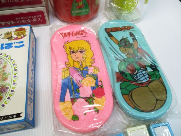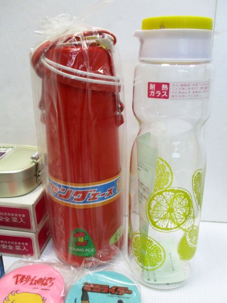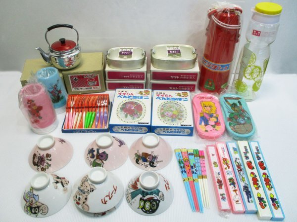 G132 昭和レトロ まとめて/ 子供用飯碗 箸箱 箸 水筒 アルミ弁当箱 パーマン 仮面ライダー アニメキャラクター デッドストック 当時物 雑貨