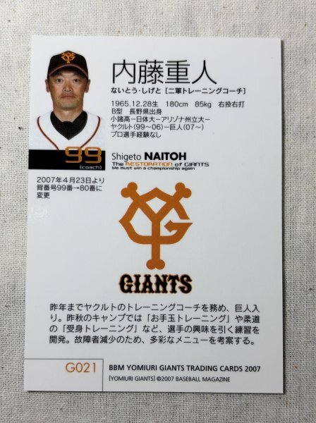 2007 BBM 内藤重人 G021★読売ジャイアンツ 巨人