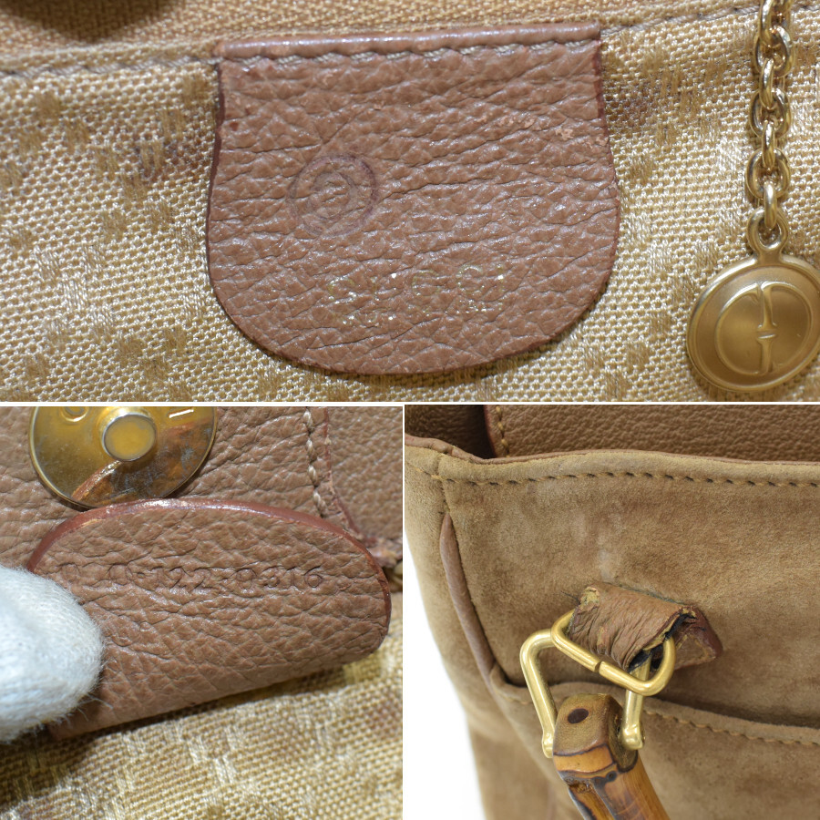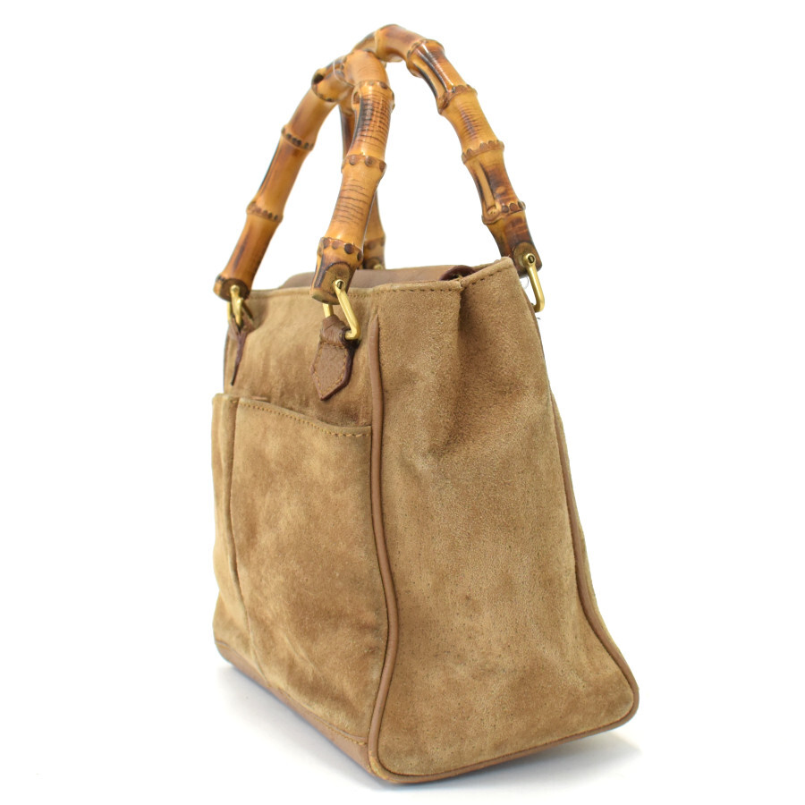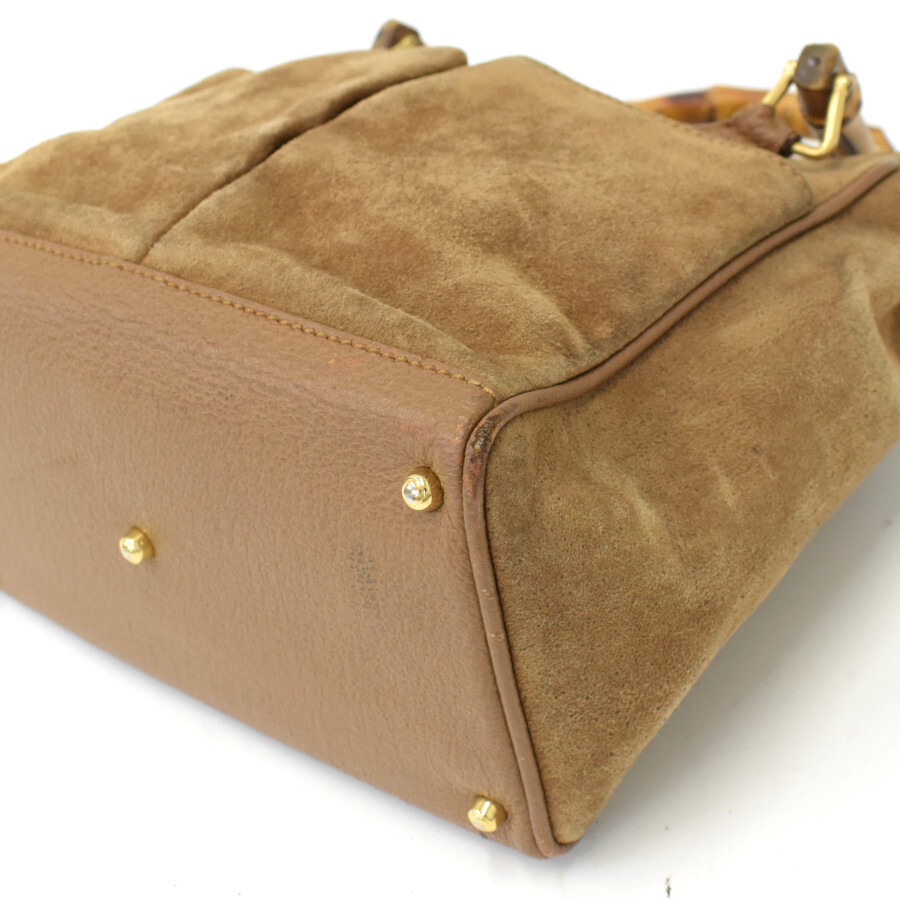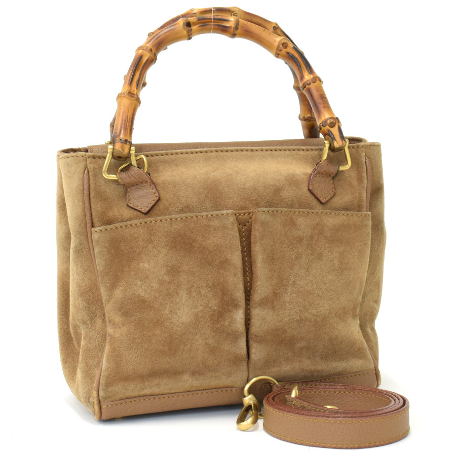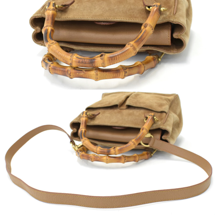 1円◆美品 GUCCI グッチ 2way ハンドバッグ ショルダー 000・122・0316 バンブー スエード レザー ブラウン◆E.Csl.zE-21