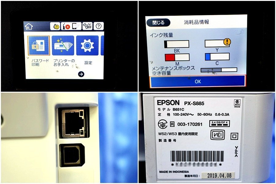 印字OK/54809枚/ EPSON エプソン A4対応 カラー インクジェットプリンター ★PX-S885★ 61290Y