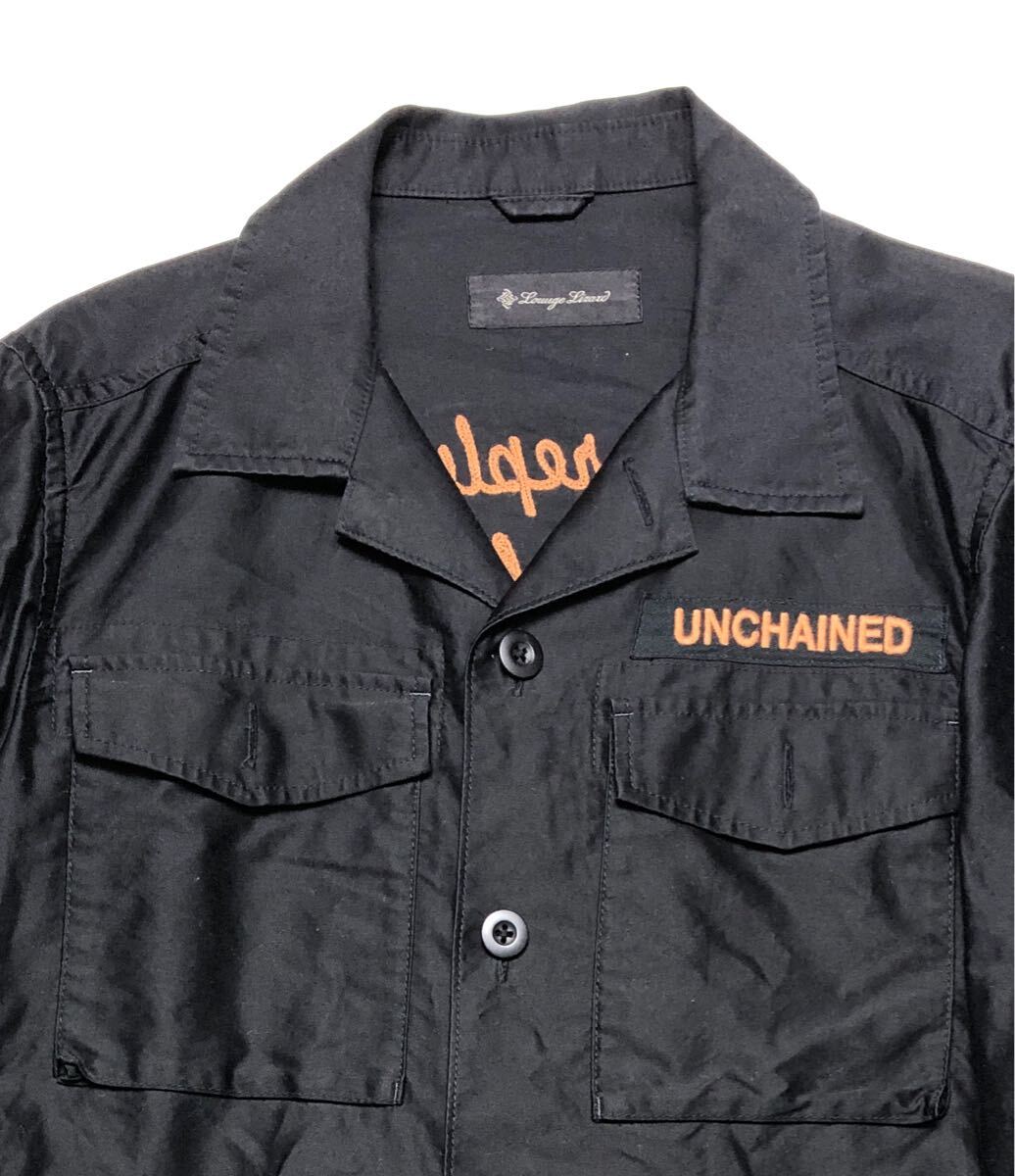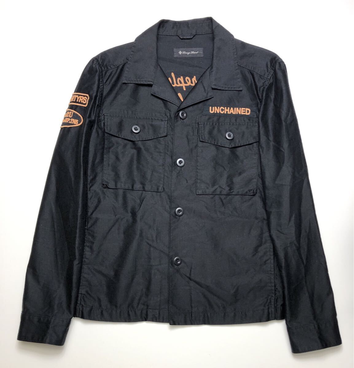 Lounge Lizard ラウンジリザード ミリタリーシャツ シャツジャケット 黒 1サイズ バック刺繍 チェーンステッチ