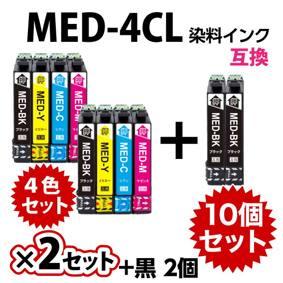 MED-4CL 互換インク 4色セット×2セット+BKx2個 10個セット エプソン EW-056A EW-456A用 プリンターインク MED-BK MED-C MED-M MED-Y