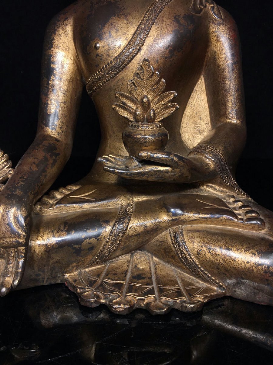 ▼渡鶴羽▼P007大明永樂年施 純銅塗金 釈迦牟尼仏像 細工彫刻★仏教古美術★仏像★細密細工★廃寺旧蔵★廃寺買出品