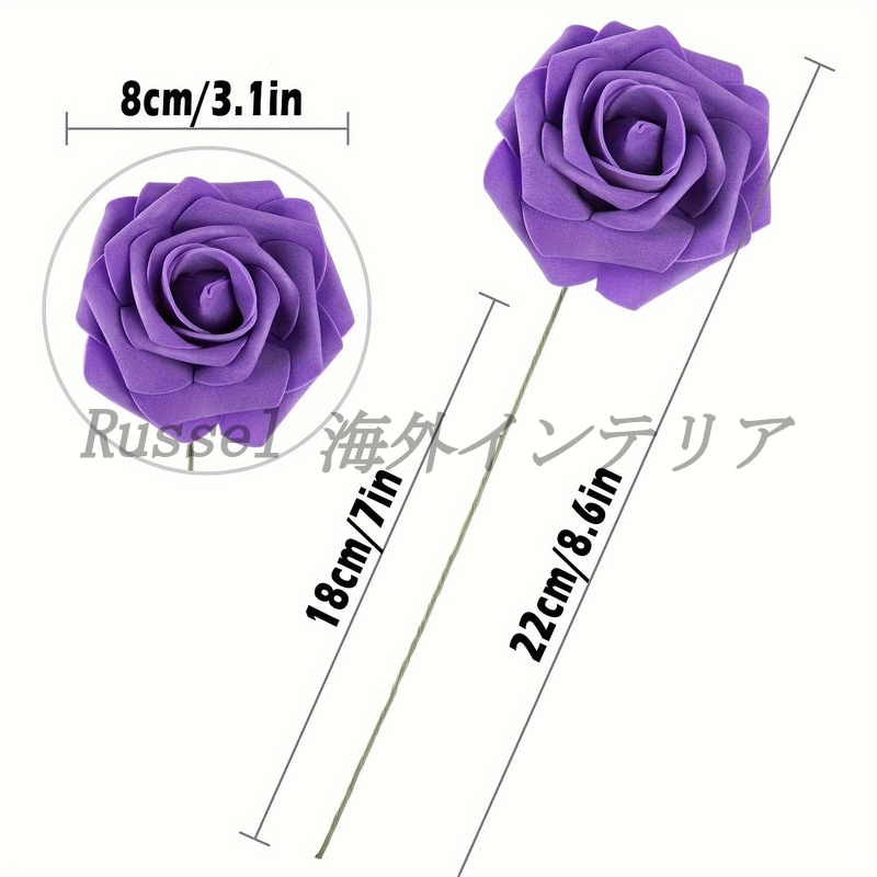 造花 薔薇 バラ 紫 パープル 25本セット おしゃれ かわいい 花束 インテリア フェイク フラワー 花 ローズ ドライフラワー風 パーティー