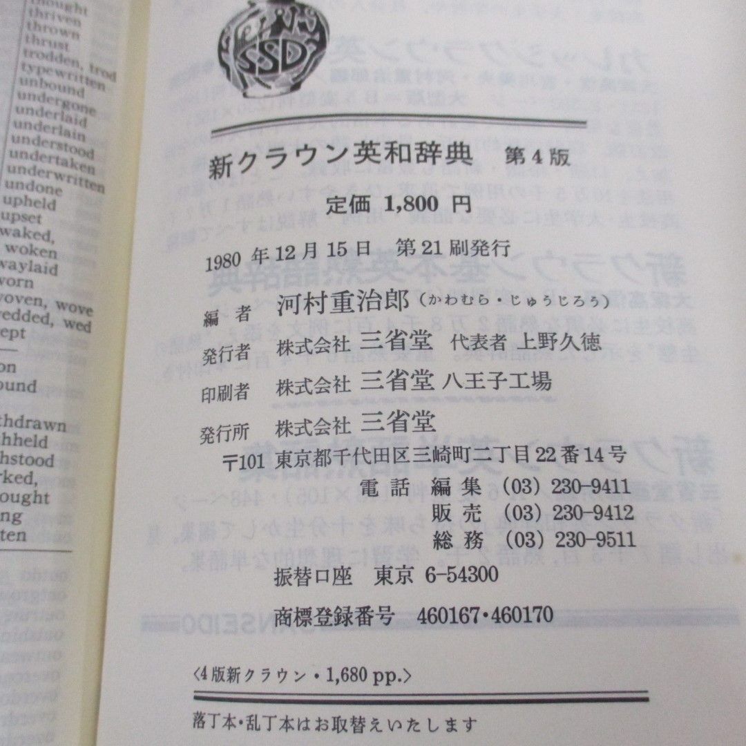 ▲01)【1点限り!・1円〜】新クラウン英和辞典 第4版/河村重治郎/三省堂/1980年/A