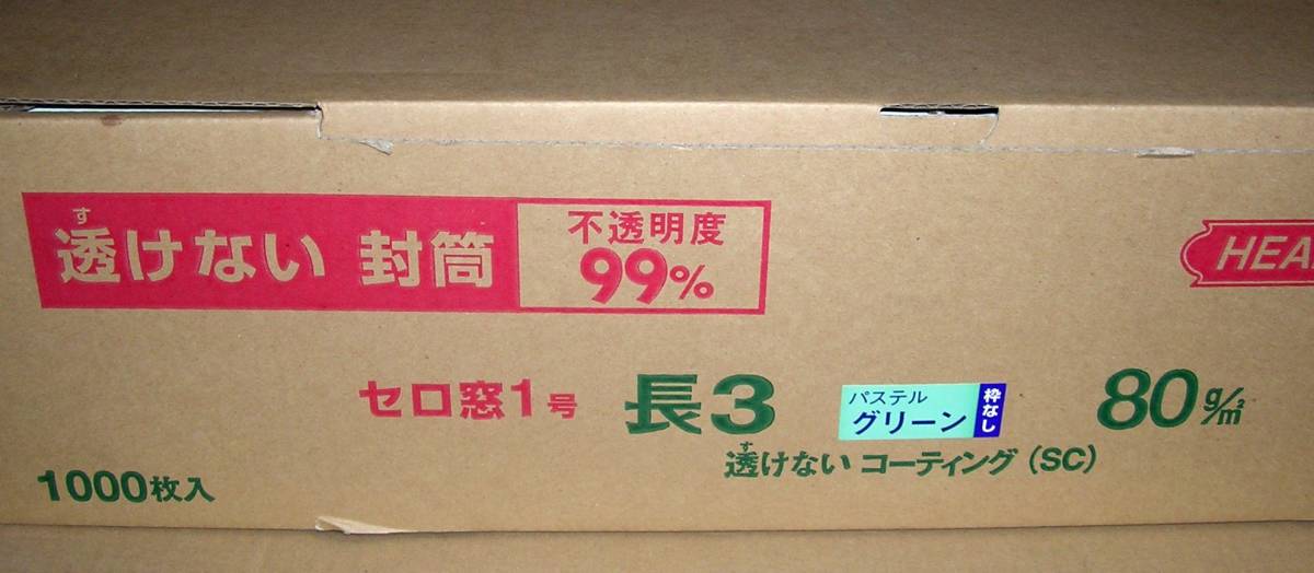 【長3封筒】F06 ハート封筒 長3パステルグリーン 80g/㎡ セロ窓 枠なし センター貼 透けないコーティング 100枚set 《出品数量:5》