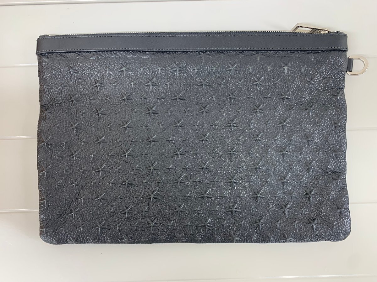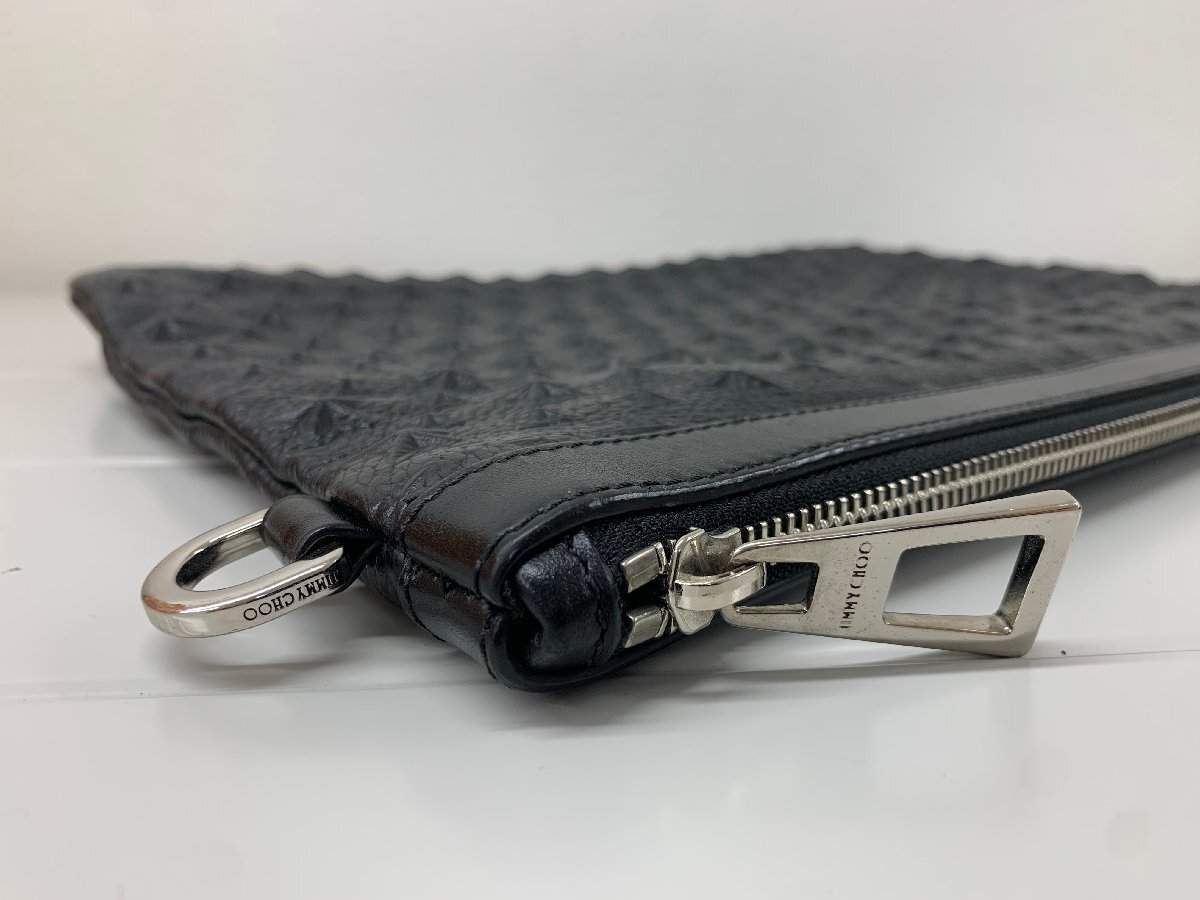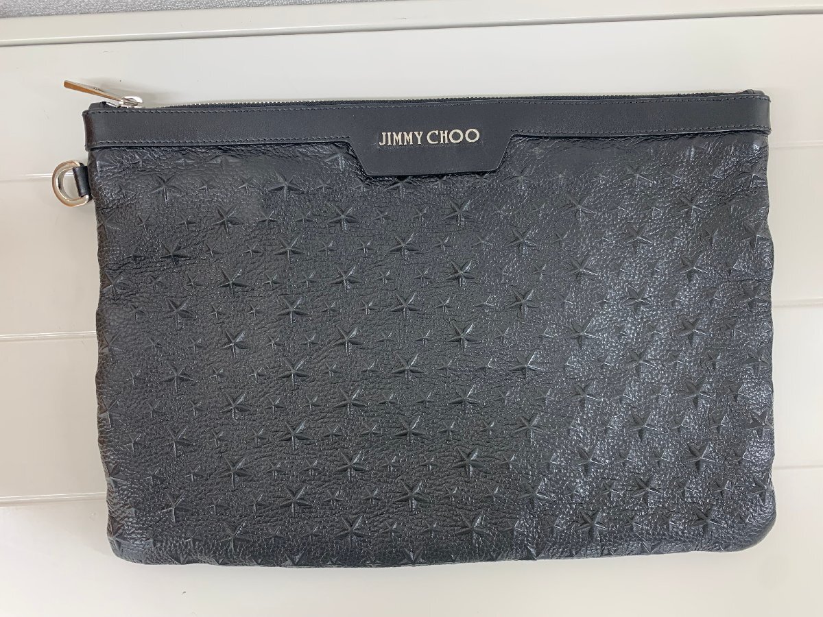 【中古】☆1円スタート☆ JIMMY CHOO ジミーチュウ スター型押し クラッチバッグ セカンドバッグ レザー ブラック