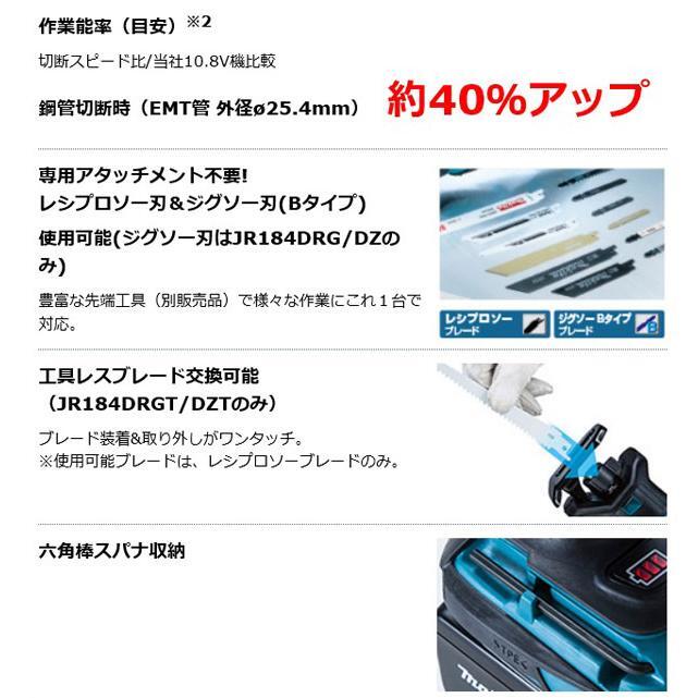 マキタ[makita] 18V 充電式レシプロソー JR184DZT(本体/工具レス仕様)